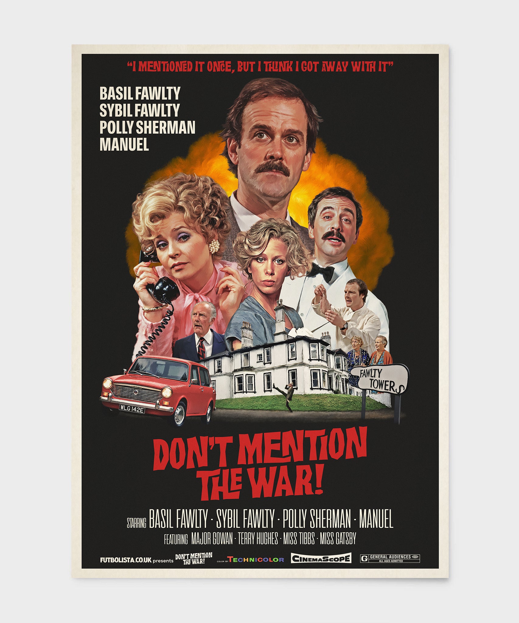 DON'T MENTION THE WAR! - A vintage movie-poster tribute to one of Britain’s most iconic sitcoms.